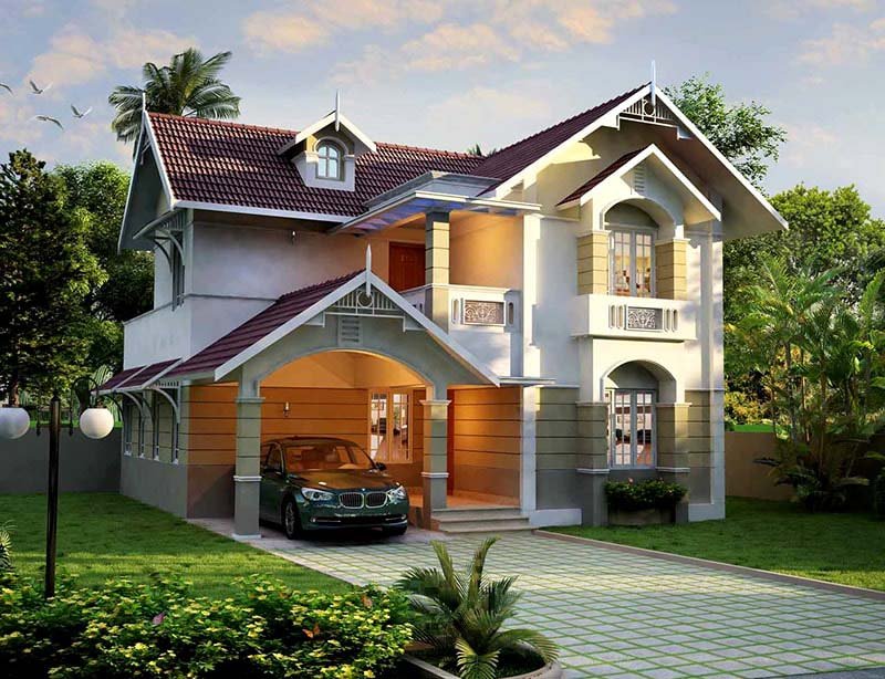 Biệt thự mini 2 tầng mái thái với thiết kế siêu đẹp